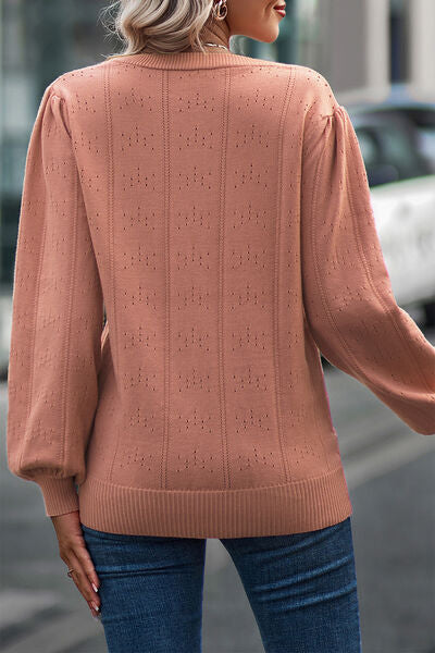 Sold outEyelet V-Neck Lantern Sleeve Sweater